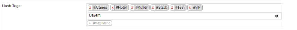 Bei der jeweiligen Dateneingabe, etwa bei der Bearbeitung oder der Anlage von Kunden oder Benutzern, können Sie ab sofort die gewünschten Hashtags setzen und auch wieder entfernen.